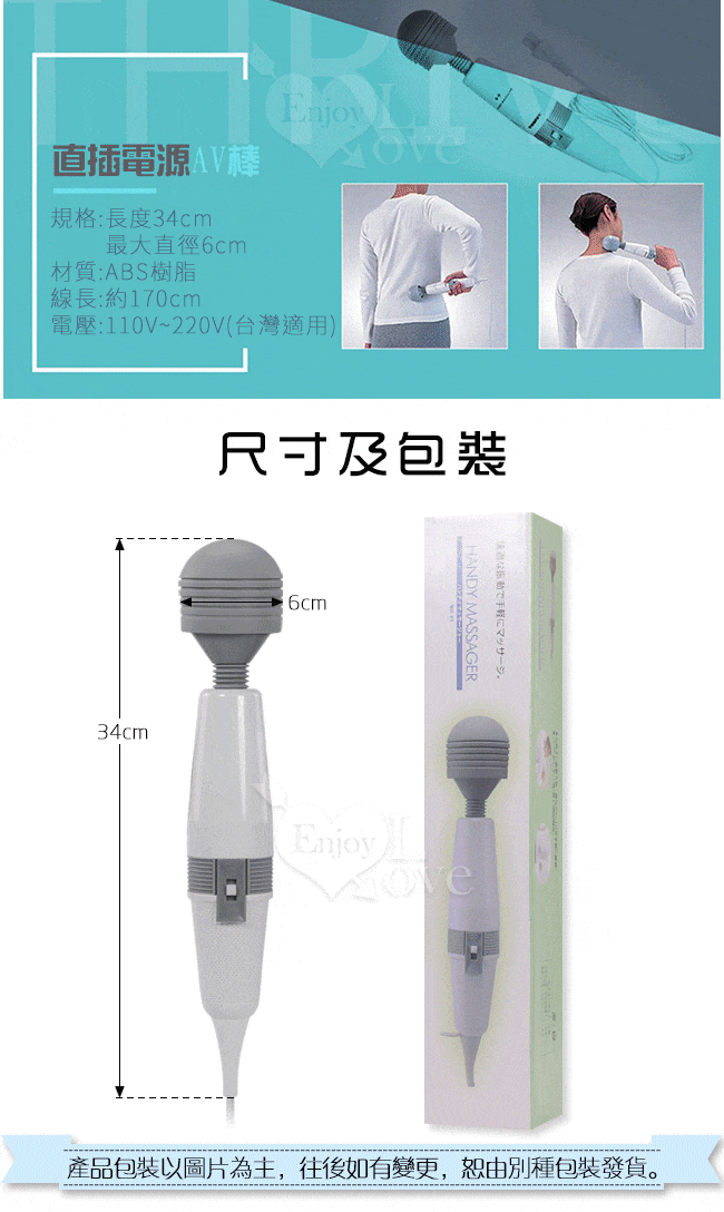 尺寸:棒體全長34cm / 頭部直徑6cm / 電源線長170cm