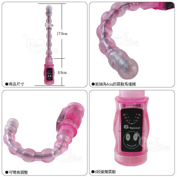 高科技六種震盪效果,5顆光滑彈珠塞入容易,強力震動更讓它們舞技一流與之後庭G點共舞,美妙感覺難以言喻。拉出時對後庭口末梢神經的衝擊一浪接一浪,讓你高喊一次又一次!