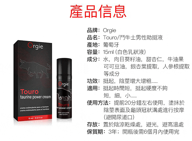 葡萄牙Orgie.Touro 鬥牛士 男性能量助挺液 15ml 葡萄牙Orgie.Touro 鬥牛士 男性能量助挺液 15ml